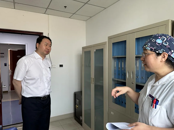 李伟详细了解了我院出生医学证明的办理流程和管理情况,现场查看出生医学证明的签发地点及档案存放地点,指出了目前工作中存在的漏洞,倾听出生证明工作中存在的困难,针对重点场所电子监控全覆盖等问题,提出解决办法,并要求尽快完善相关设置。