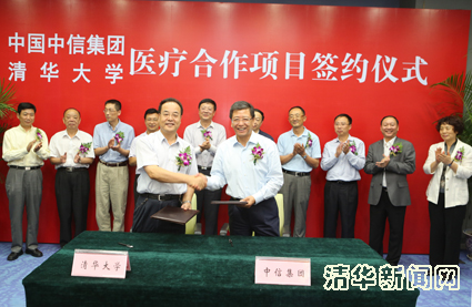 8月28日下午,中信-清华大学玉泉医院合作项目在清华大学主楼举行了签约仪式。中国中信集团董事长常振明、清华大学校长陈吉宁、中国中信集团副总经理兼执行董事窦建中、清华大学副校长康克军、中信医疗健康产业集团董事长郭志荣、清华大学玉泉医院院长左焕琮等出席。
