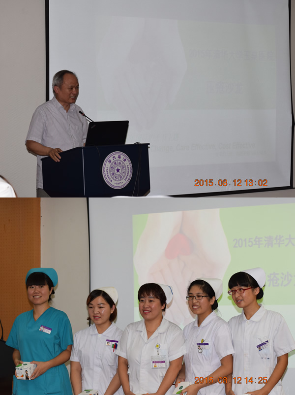 2015年8月12日下午在七楼会议中心举办了“清华大学玉泉医院第一届压疮沙龙”,主题为:学习交流、案例分享。此次压疮沙龙由护理部发起,基础护理质控组和压疮专业技术组共同承办,目标是使临床护理人员更新压疮预防理念,获得最新的压疮知识,及时正确的识别压疮危险因素和判断压疮发生的危险性,采取有效的预防措施,运用正确的方法对患者进行皮肤护理,加强对皮肤的保护,给予个体化营养指导,最终达到提高压疮预防效果,促进压疮愈合的目的。主管护理工作的刘破资副院长,护理部王华枝主任和来自院内多个科室的护理骨干约50多人参加了此次活动,李玉华护士长主持会议。