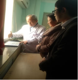 (刘破资教授(左一)与刘红教授(中间)、郝梓凯博士(右一)就科研合作项目开展交流)