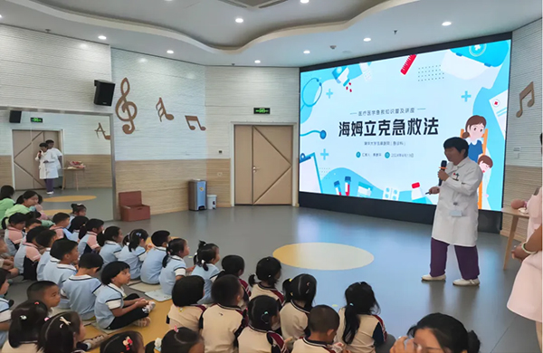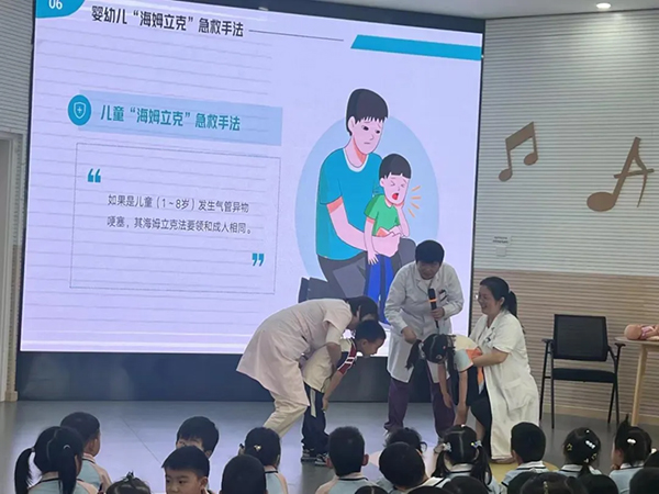 急诊科李彦平医生向老师和小朋友们详细介绍了“海姆利克急救法”的原理及操作步骤,并现场演示互动,让老师和小朋友们更加直观地了解急救方法的具体应用,尤其是对婴幼儿的急救。教师们纷纷表示,这次活动让她们受益匪浅,不仅学会了海姆利克急救法,还提高了自己的急救意识和识别判断紧急情况的能力。