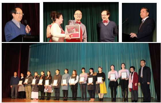 大会分为二部分。第一部分由工会主席马永刚主持,医院院长张玉琪代表院领导讲话,肯定了过去一年来医疗工作取得的成绩,希望医院能在2018年,向中西医结合医院转型升级有突破性进展,取得三级医院资质,医院的明天会越来越好。党委书记赵雨东宣读了2017年 “年度医疗标兵”、 “年度护理标兵”、优秀职工和优秀工会积极分子名单;“心愿基金”捐助者委托人沈宝镒宣读了医护人员心愿基金新年贺词及第二批获得心愿基金的医护名单。行政、党委正副职领导为获奖者颁发了荣誉证书。