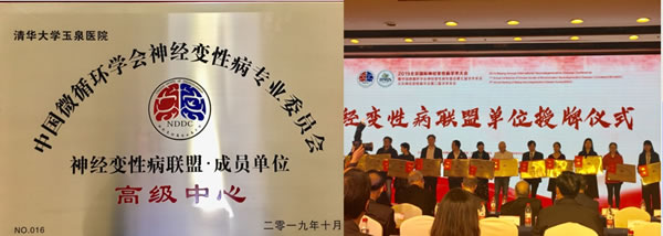 2019年10月19日,由中国微循环学会神经变性病专业委员会主办的北京神经变性病学会第三届学术年会在北京隆重召开,本次神经变性病大会的主题是“机遇与挑战”。大会举行了神经变性病诊疗中心授牌仪式,清华大学玉泉医院