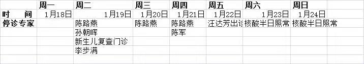 2021年1月18日到1月24日停诊信息