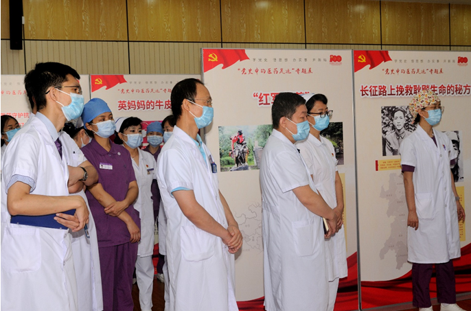 医院领导班子,党委和纪委委员,科主任、护士长、党支部书记、支委及职工代表共70余人参加仪式。后续,展览将展出一周左右,医院将组织各党支部、各科室利用业余时间参观学习,同时向辖区医务人员开放。