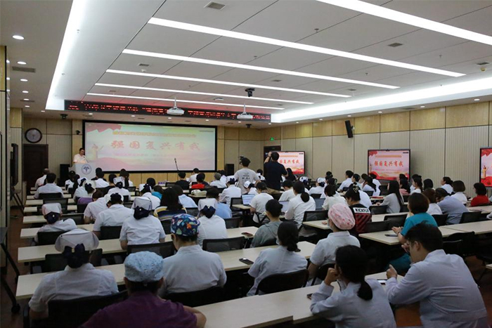 李伟代表医院对“强国复兴有我”主题宣讲团的到来表示诚挚的欢迎和衷心的感谢!他指出,宣讲团成员们奉上的精彩宣讲,一个个生动感人的故事背后,蕴含着的是奉献、大爱、奋进和榜样的力量,抒发着首都医务工作者在强国复兴征途中肩负使命、奋斗青春的情怀。医院广泛动员年轻医护骨干、党工团优秀青年和代表共同聆听,医院干部职工有幸在内容丰富、感人肺腑的宣讲中感受人格的魅力和时代的力量。“强国复兴有我”是强大的信念,也是铿锵的承诺,激励着医院干部职工奋发有为,在各自的岗位上奉献力量,服务首都卫生健康事业发展,共同书写强国复兴华章。