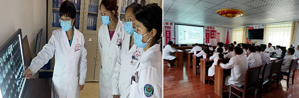 全心工作,倾囊相授。不知不觉中,北京市第五批第三期称多县医疗团队已经工作了2个多月,逐渐适应了高寒、缺氧、干燥的高原环境。史淑利医生作为消化科主任,因地制宜,根据医院医疗情况,制定了培训及教学计划,每周2-3次教学查房,每月2次院内讲课。从基础抓起,认真学习理论知识,将学到的知识灵活应用到实际工作中。手把手教学徒弟们询问病史,体格检查,分析化验单,认识正常及异常心电图,每位患者的影像学检查要亲自阅片。通过“传、帮、带”模式,将自己的临床经验倾囊相授,无论是否工作日,只要科室有需求,随时给予帮助,使年轻医生以最快速度提高理论知识及临床技能。