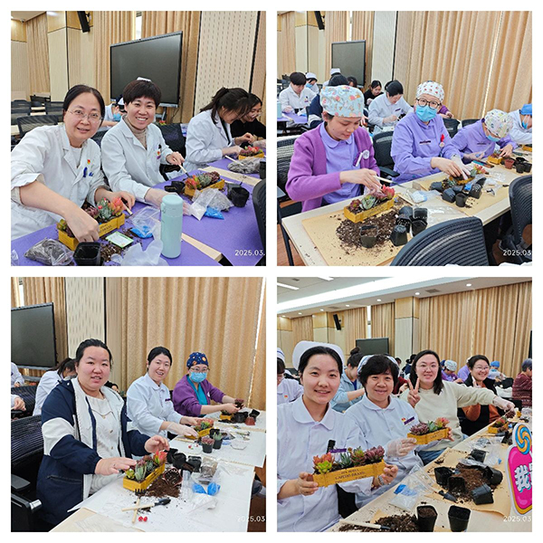 为庆祝第115个“三八”国际劳动妇女节,丰富女职工精神文化生活,3月7日下午,医院工会在二层报告厅举办了多肉盆景种植特色体验活动。
