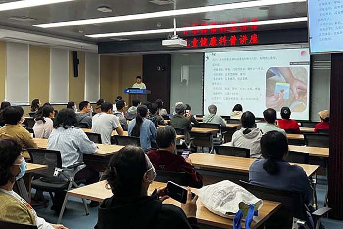 我院儿科医护团队以健康科普、义务巡诊、儿童中医外治疗法体验为主要内容,通过儿童常见病症的识别及处理、儿童行为与发育问题早期识别、儿童中医体质辨识基础、儿科常用中医外治疗法等专题讲授和体验,为现场师生家长带来了一堂兼具理论与实践的儿童健康保健课。