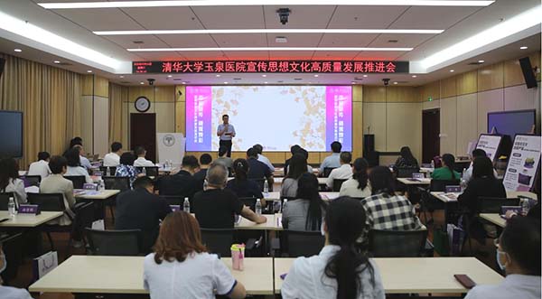 会上,我院党委书记李伟汇报了新时期医院加强宣传思想文化工作的理念思考和实践探索。玉泉医院聚焦新时代宣传思想文化工作新要求,立足清华医学高质量发展的关键时期,思考如何更好地服务国家经济社会发展,将全面推进宣传思想文化工作视为清华大学附属医院的责任与使命,及推动中西医融合创新发展、促进人民生命健康的必然要求。结合医院特点,他总结了在平台融汇、队伍建设、文化塑造和协同增效等方面的有效举措,提出积极打造“一体双核、五C六维”的医院宣传思想文化体系,并号召全院职工践行“人民至上、生命至上”理念,人人争当宣传员,齐心协力传承创新发展中医药文化,为推进健康中国和文化强国建设贡献更大力量。