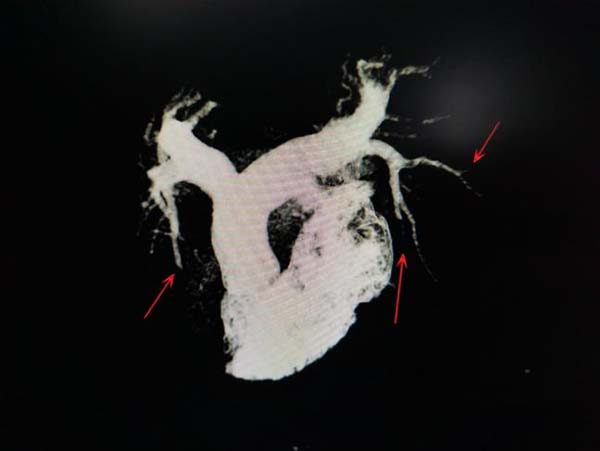 - 清晰显示多支肺动脉内血栓阻塞