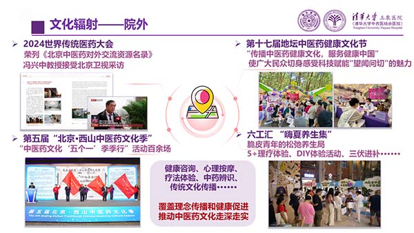 以“融承中西、厚德载物”为核心价值,以清华大学文化与中医药文化为根本,中西医结合文化体系日臻完善。