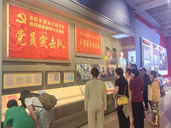 参观过程中,党员们驻足凝视、低声交流,深刻感悟到如今和平生活的来之不易,更体会到身为党员肩上沉甸甸的责任。大家纷纷表示,作为急危重领域的医护人员,我们虽不在国防一线,但守护人民生命健康就是我们的战场。我们要以先辈为榜样,在自己的岗位上争分夺秒、全力以赴,为守护生命筑起坚固防线。