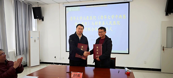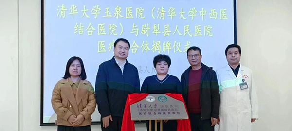 仪式现场,双方代表签署了《清华大学玉泉医院(清华大学中西医结合医院)与新疆尉犁县人民医院医疗联合体合作协议书》,并一同为“清华大学玉泉医院(清华大学中西医结合医院)医疗联合体成员单位”揭牌。