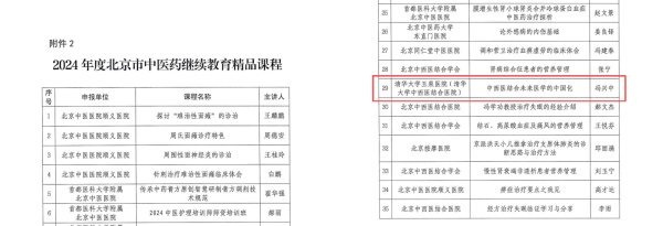 入选2024年度北京市中医药管理局