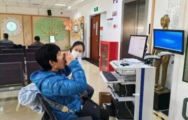 义诊现场,呼吸科的医护人员为居民们提供了慢阻肺高危因素初筛问卷及肺功能检测。同时,现场还设置了吸入药物规范使用方法演示、呼吸康复训练动作指导等互动环节。