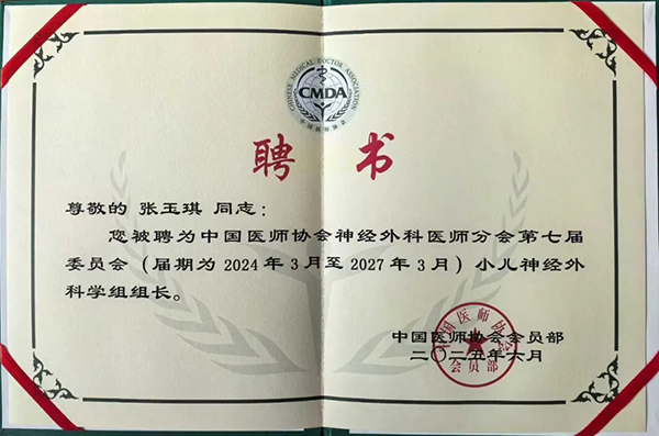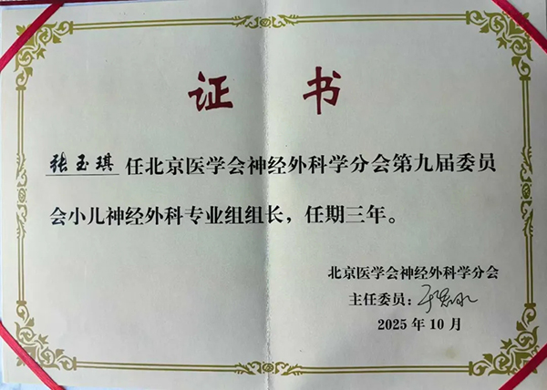 学术动态丨我院张玉琪教授连任全国、北京小儿神经外科学组组长