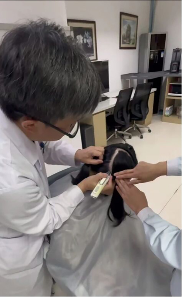 术后患者精神状态佳,秀发如初,发型自然,充满朝气。术后第5天由护士帮忙清洗头发并顺利开机,充分体现了ANS治疗在微创性与生活质量保护方面的优势。