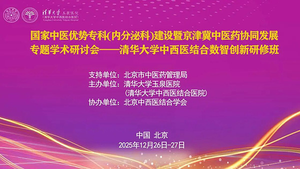 12月26日至27日,“国家中医优势专科(内分泌科)建设暨京津冀中医药协同发展专题学术研讨会——清华大学中西医结合数智创新研修班”在我院召开。本次会议汇聚了来自北京、上海、天津、河北等地中西医结合领域的知名专家、学者及临床骨干等,围绕中医优势专科建设、中西医融合创新、数字化转型与区域协作等前沿议题,开展了一系列高水平的学术报告与深度研讨。清华大学玉泉医院(清华大学中西医结合医院)(以下简称“玉泉医院”)院长助理、健康管理中心(治未病)主任李步满主持开幕式。