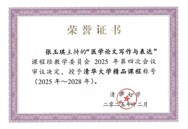 教学动态丨张玉琪教授团队《医学论文写作与表达》课程获清华大学精品课程