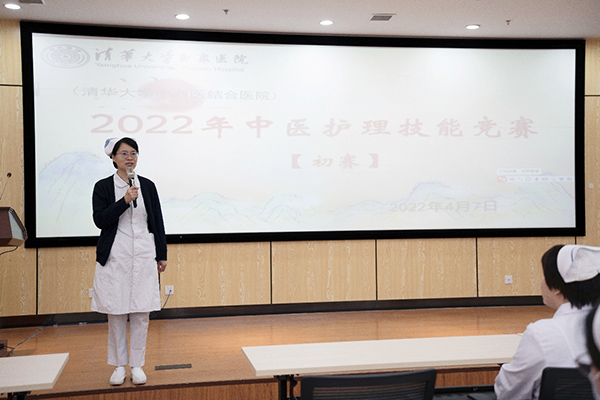 为迎接第111个国际护士节的到来,弘扬中医护理传统文化,提高中医护理适宜技术操作水平,为患者提供更加优质的护理服务,2022年4月7日,清华大学玉泉医院(清华大学中西医结合医院)护理部举办了中医护理技术操作能手竞赛。在这个特殊的日子里,护士们通过技能风采展示为全院的护理同仁送去节日的祝福,也拉开了2022年护士节系列活动的序幕。