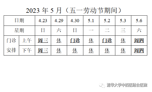 2023年劳动节期间门诊安排