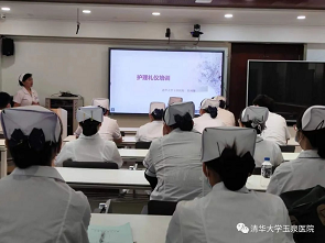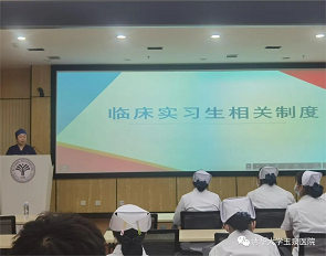 护理部教学老师孙燕介绍了医院的历史沿革与文化,对实习安排和实习须知进行了详细的说明,提高了同学们对护理工作岗位的认识,加强护理安全意识,为顺利完成实习迈出了扎实的一步。