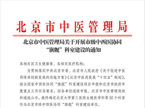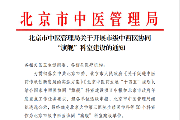 近日,北京市中医管理局组织遴选市级中西医协同“旗舰”科室建设工作,我院3个科室获评北京市级中西医协同“旗舰”科室建设项目单位。