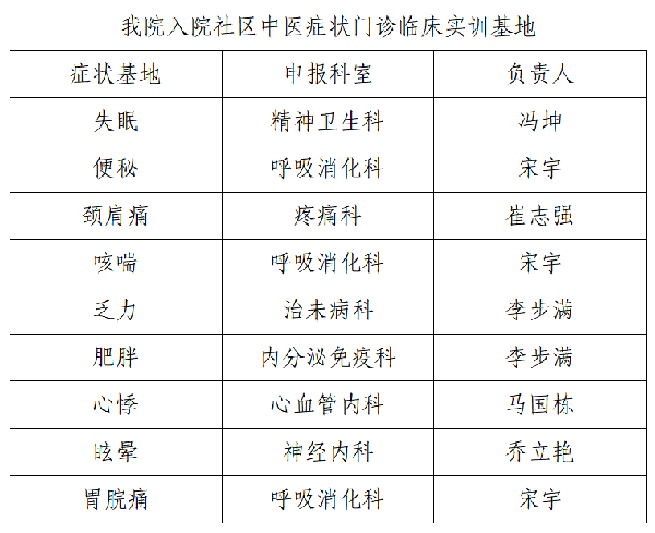 北京市社区中医症状门诊临床实训基地