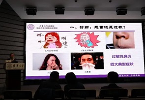 活动伊始由我院副院长、清华大学长聘教授冯兴中讲授《医疗与健康获益》。我院院长助理、治未病科主任李步满讲授《中医治未病健康你我他》。针对校内春季过敏性鼻炎高发情况,耳鼻喉科主治医师赵雪琪讲授《过敏性鼻炎的中医药防治》。讲座以线上线下相结合的方式进行,反响热烈。