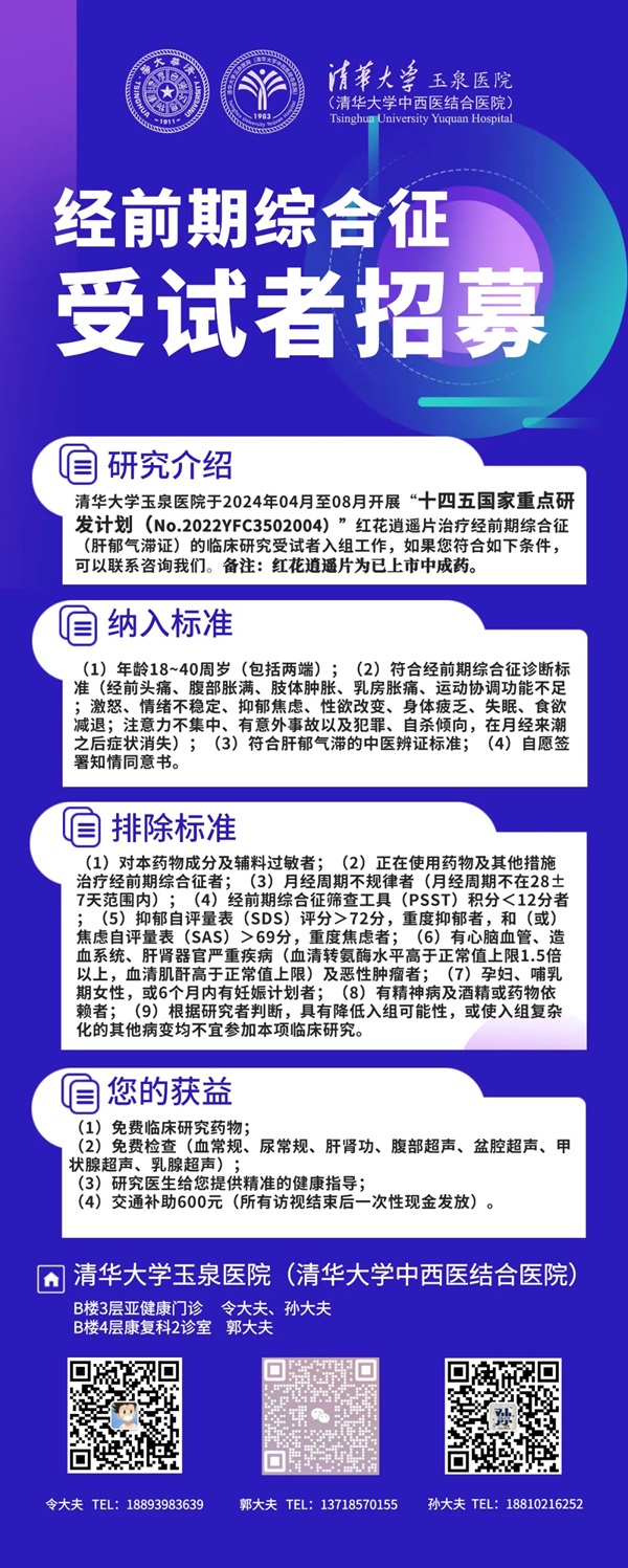 【患者招募】经前期综合征受试者招募